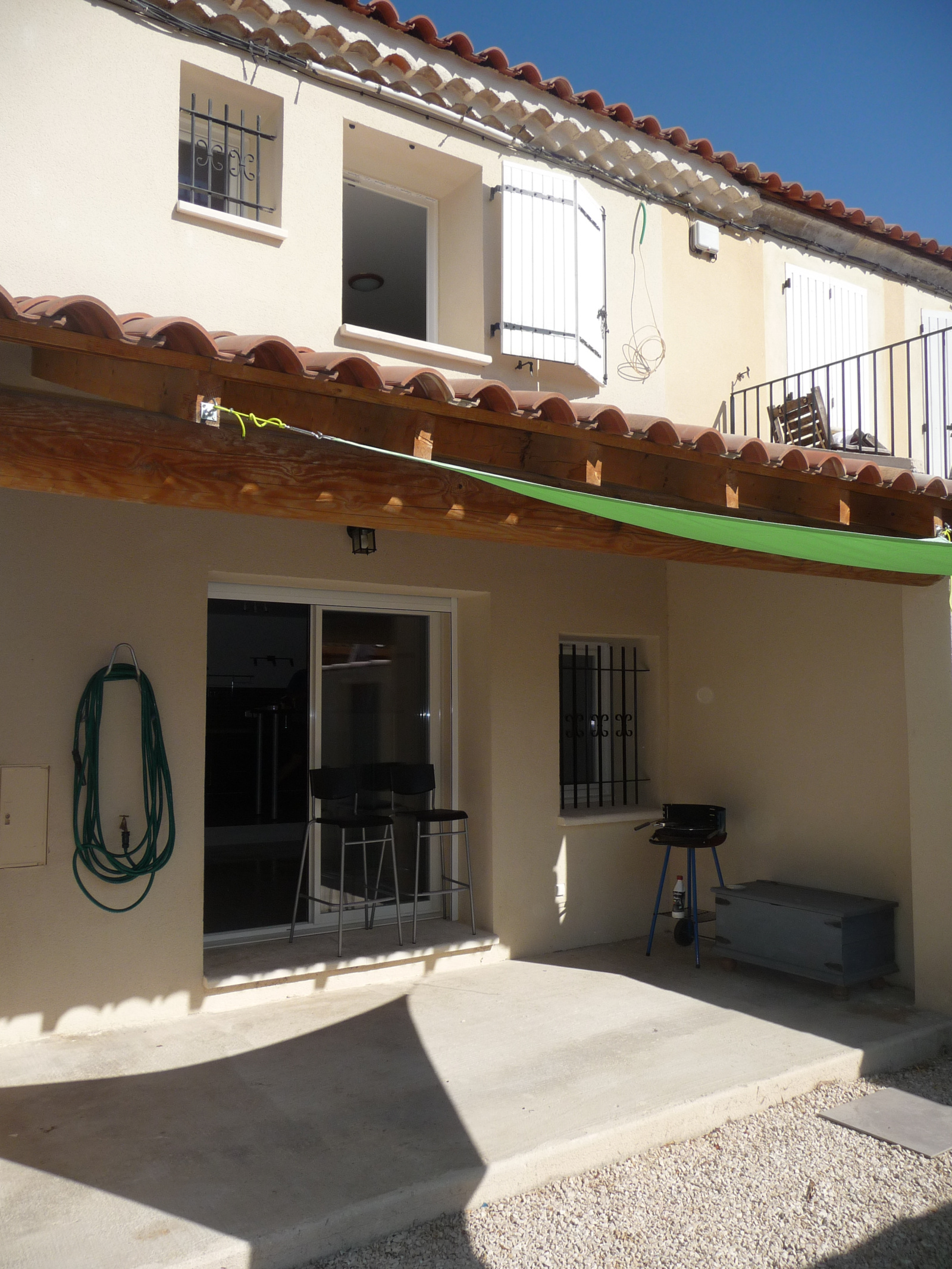 La pièce à vivre s'ouvre sur une courette au Sud, avec terrasse couverte