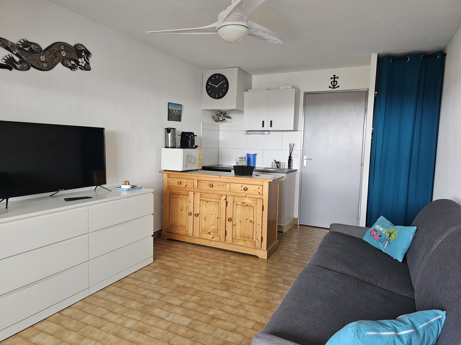 Pièce à vivre avec kitchenette et canapé-lit